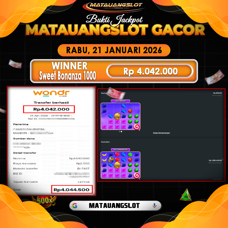 Nama Game : MENANG DARI PEMAINAN Pragmatic Play Sweet Bonanza 1000